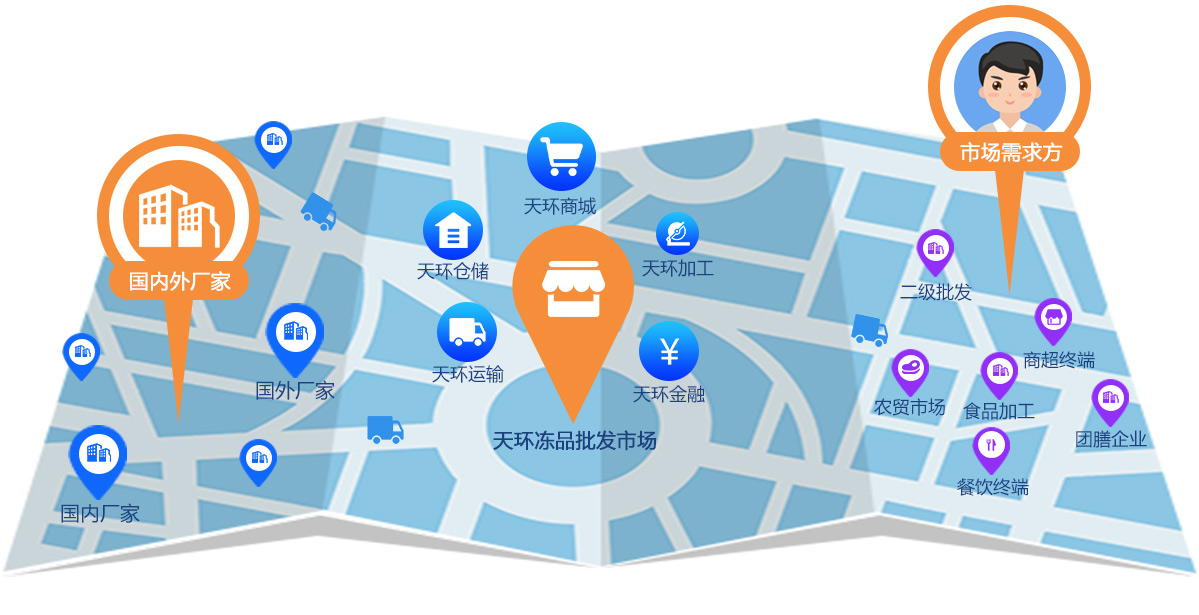 天環(huán)商城是依托于線下實體批發(fā)市場而搭建的一個專注在冷凍食品供應鏈的B2B電商平臺。